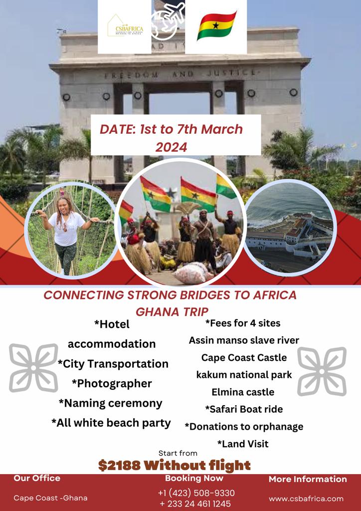 CSBAFRICA – Connecting Strong Bridges to Africa is a dynamic partnership based in Chattanooga, TN, and Ghana, committed to fostering meaningful connections and facilitating opportunities. We specialize in bridging the gap for individuals seeking resources and reliable guidance, ensuring a secure path to investment, tourism, Airbnb ventures, real estate transactions, and more in Africa.